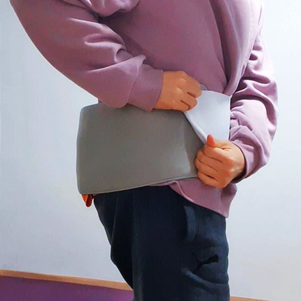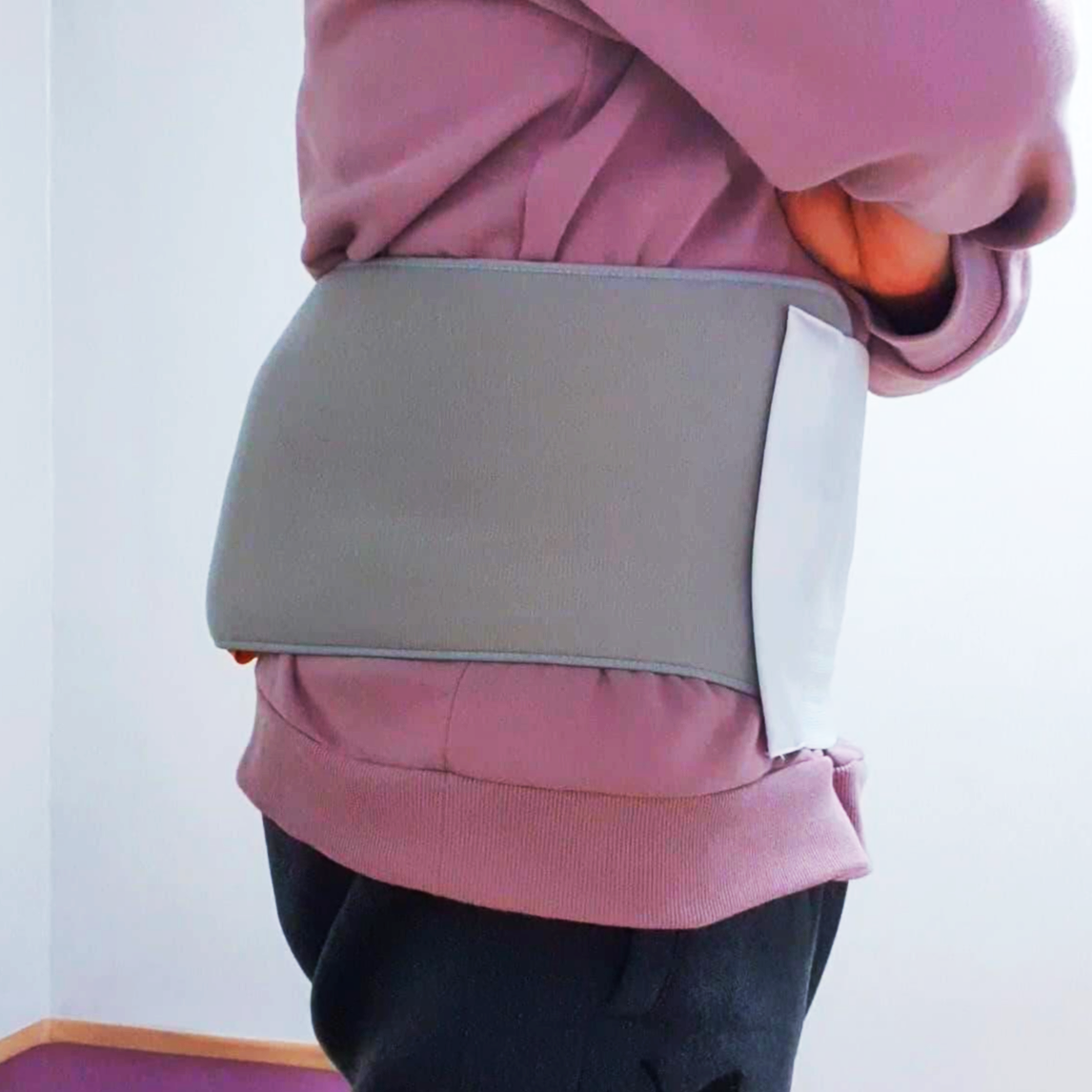 잘 데워진 면을 허리 부분에 얹혀 놓고 허리보호대로 고정해주면 끝!