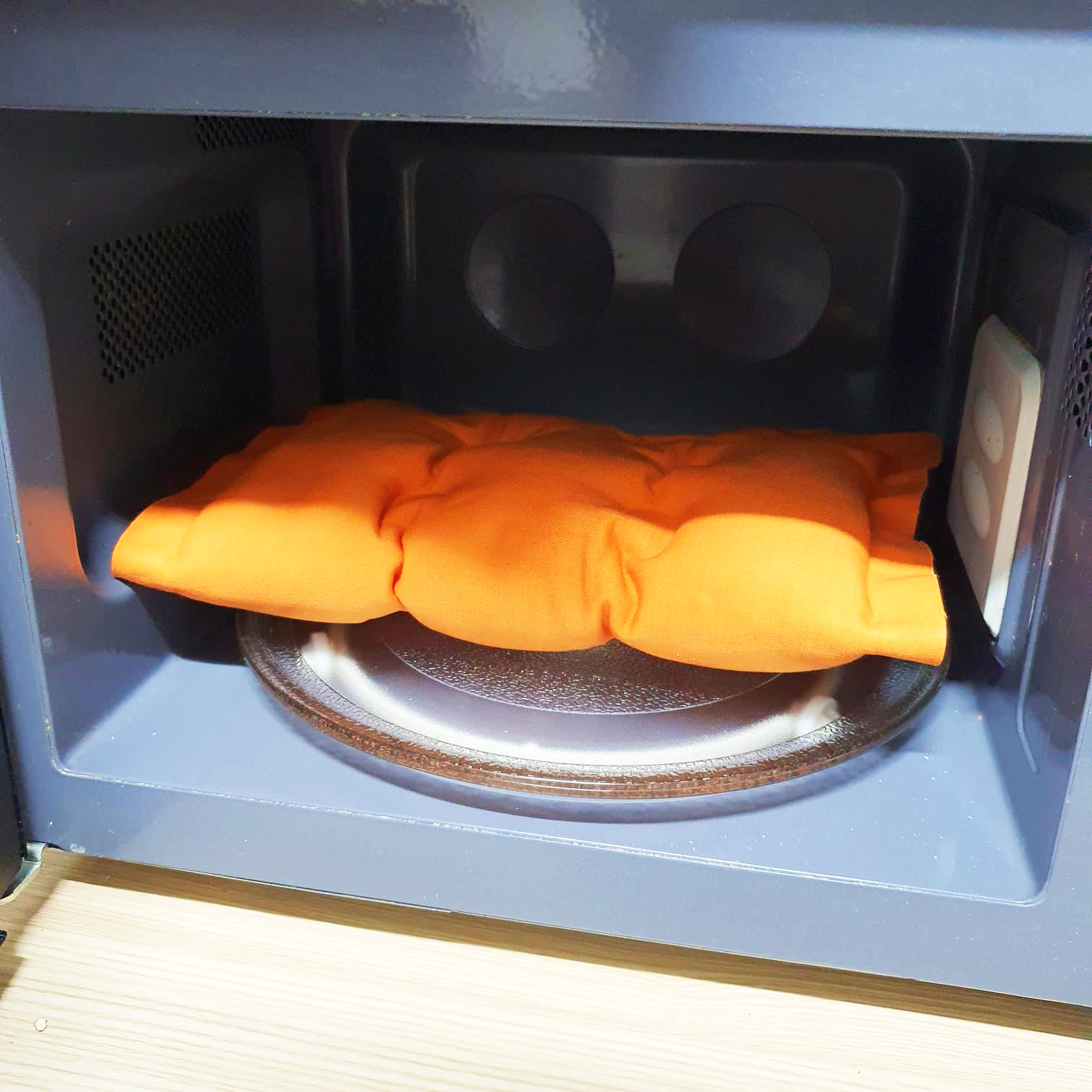 찜질팩을 레인지에 넣기에는 너무 커서 반으로 접어 넣어줬습니다. 그래도 크네요~ ^^;