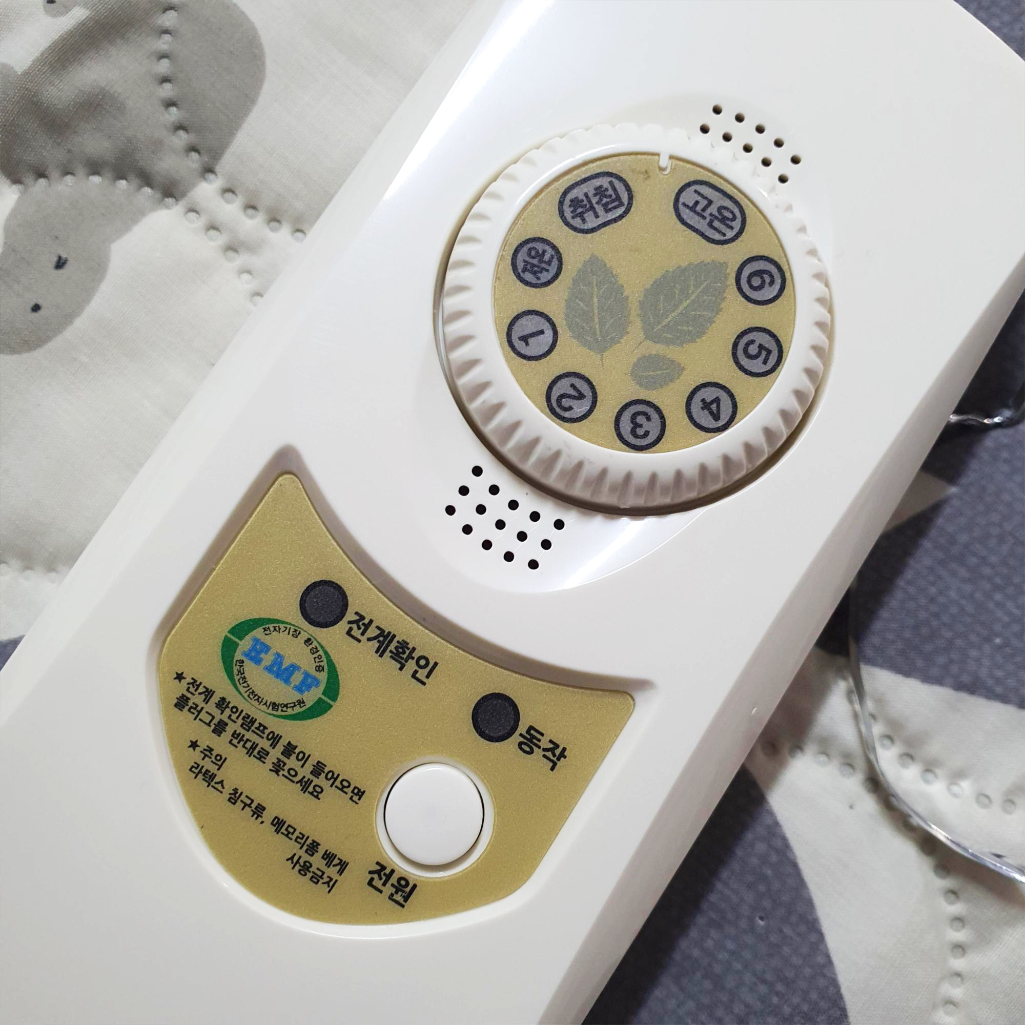 온도조절기의 전원 버튼과 온도조절 다이얼은 따로 분리되어있으며, 온도조절은 저온서부터 고온까지 총 8단계로 온도 설정이 가능하고 추가로 취침모드도 있었습니다.