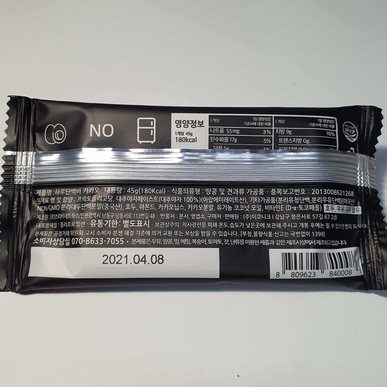 하루단백바는 기존의 프로틴바들과 비교해보면 상대적으로 단백질의 함량이 적은 편입니다.