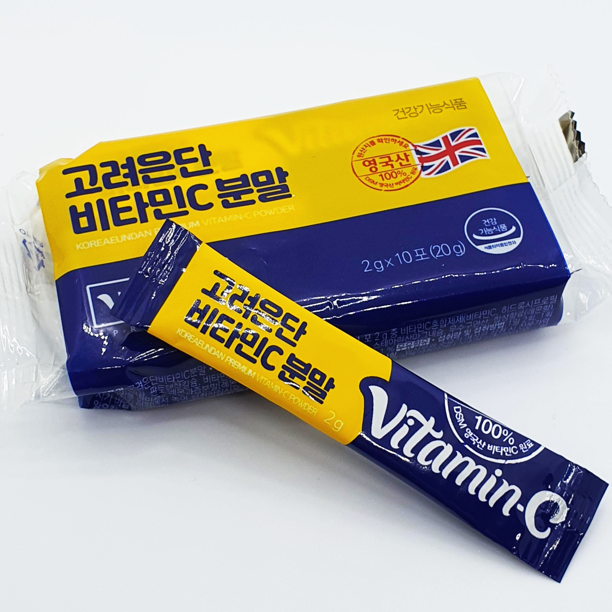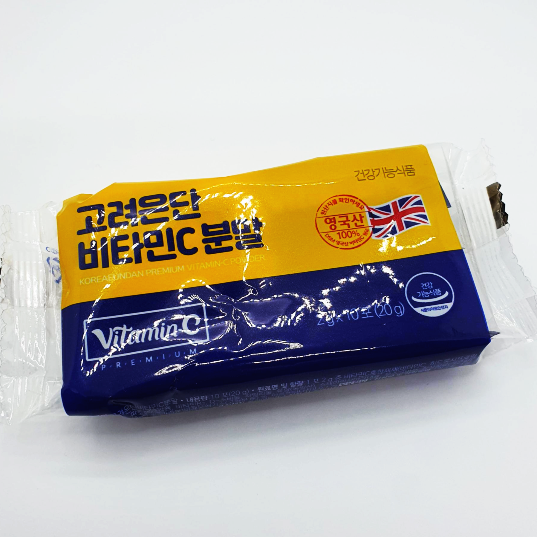 고려은단 비타민C 분말은 100% 영국산인 건강기능식품으로 한 봉지 안에는 총 10포로 구성되어 있으며, 한 포당 2g이라고 합니다.