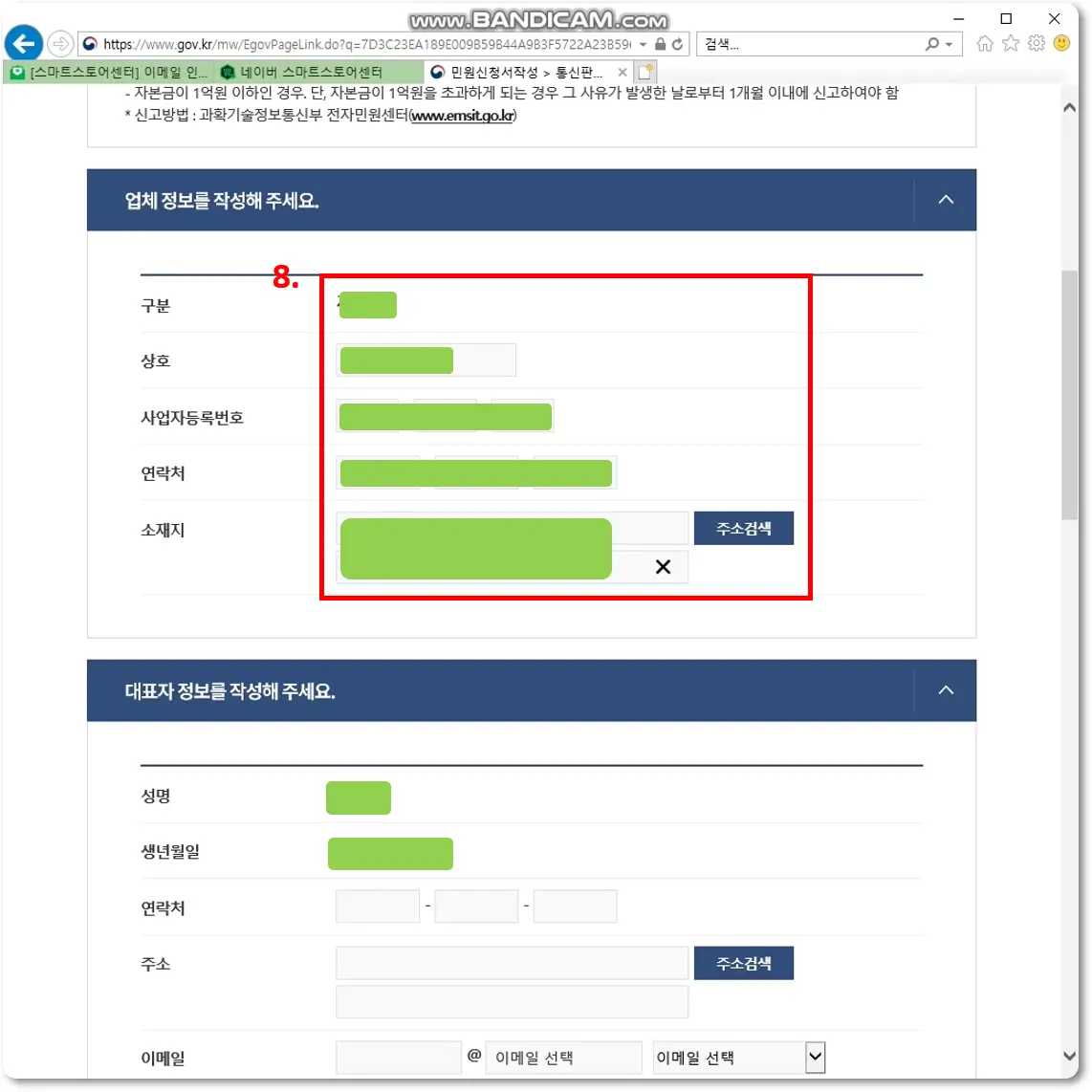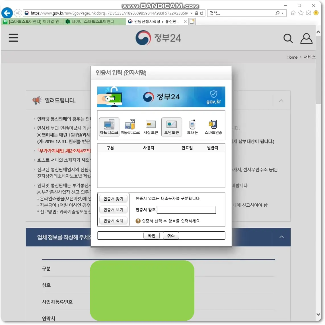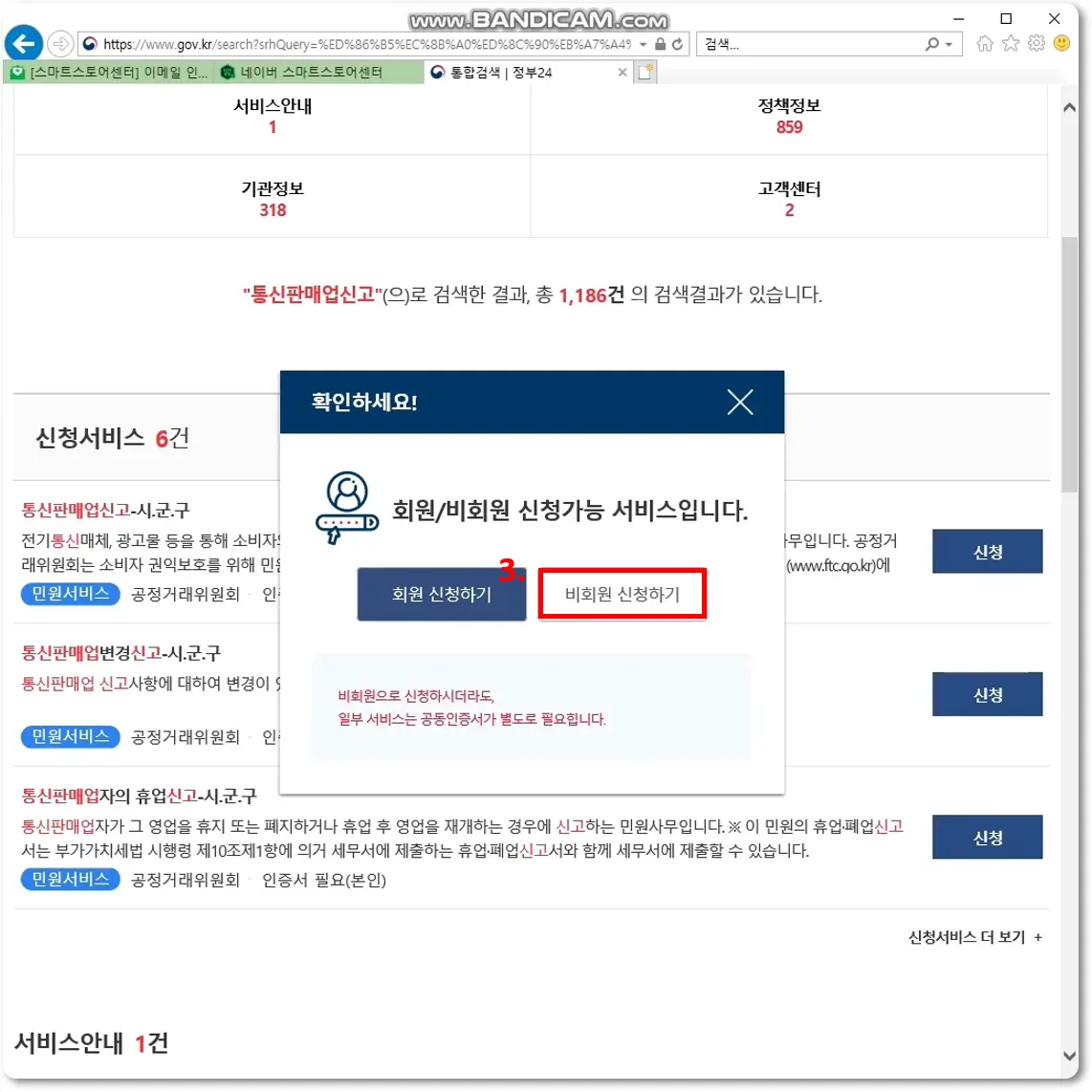 비회원 로그인 절차가 끝나면 '통신판매업 신고' 단계로 넘어오게 됩니다.