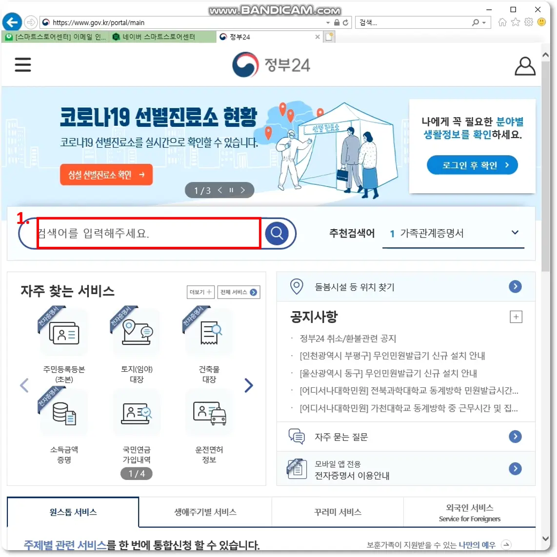 위의 사진이 정부24 홈페이지의 메인화면입니다.