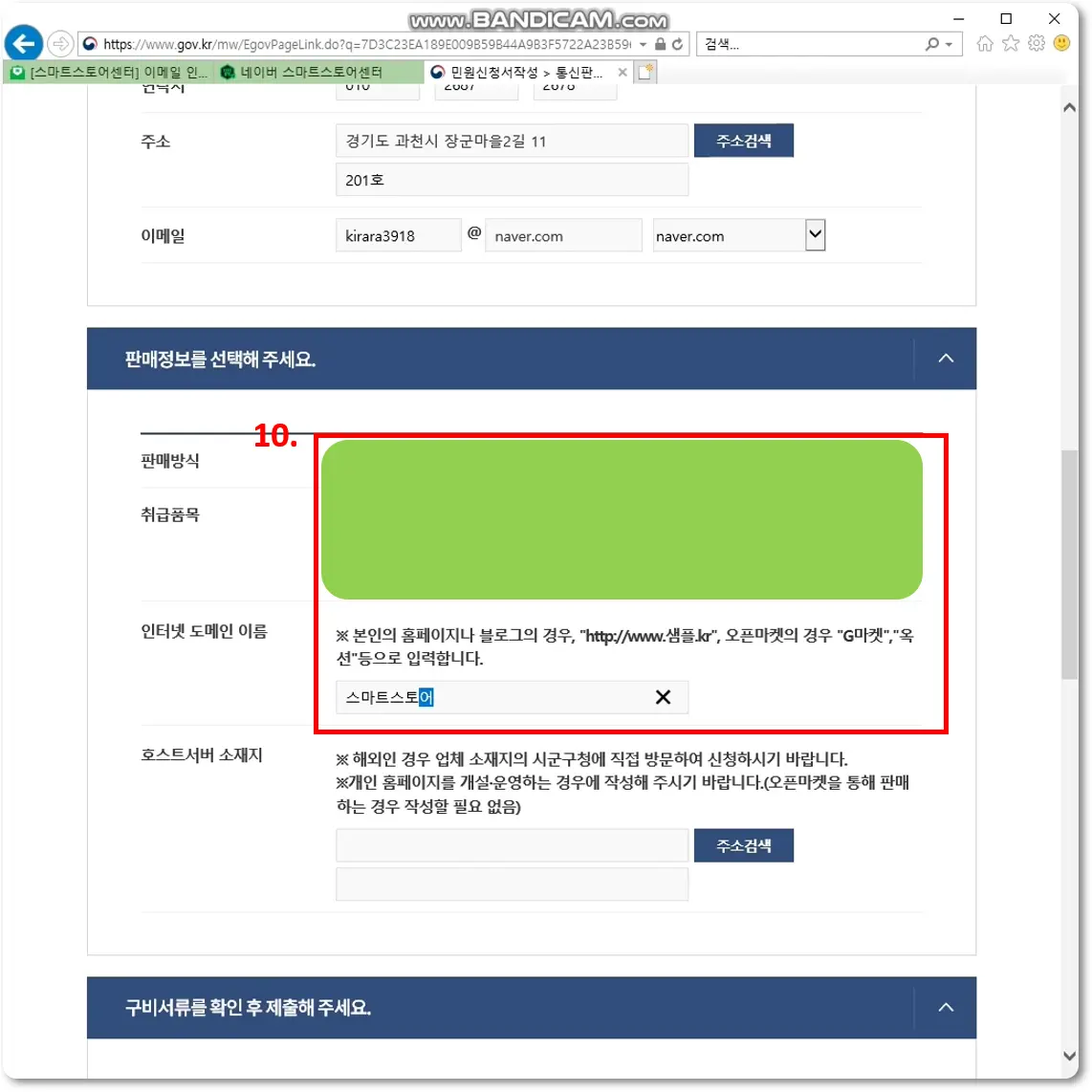 그리고, 인터넷 도메인 이름은 구매안전서비스 이용 확인증을 발급하는 과정에 스마트 스토어도 함께 개설을 했고, 앞으로 운영할 계획이 있기 때문에 저는 도메인 입력란에 스마트스토어라고 입력하고 넘어갔습니다.