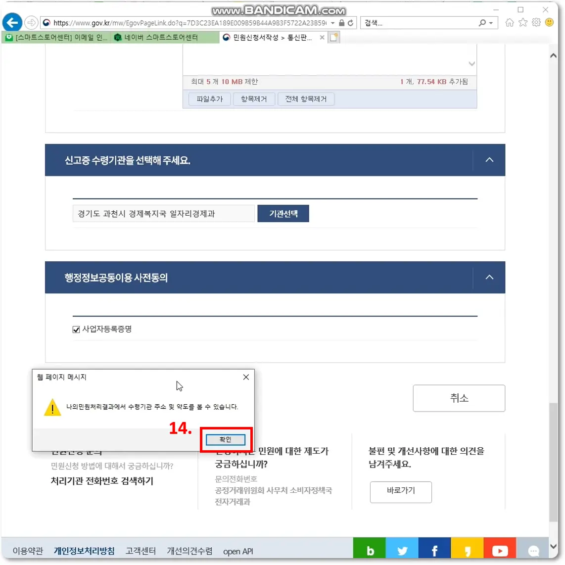 이제 '민원신청하기'버튼을 클릭하여 접수합니다.