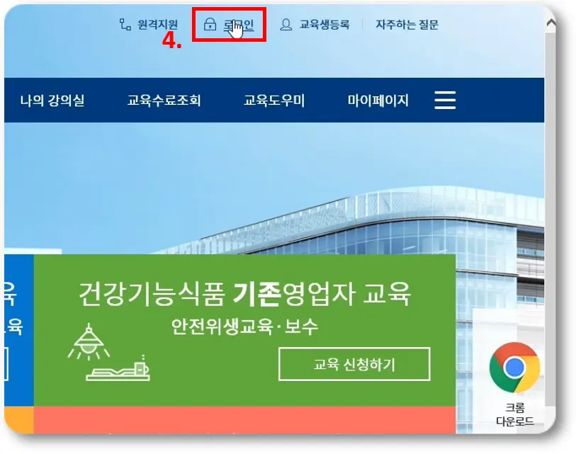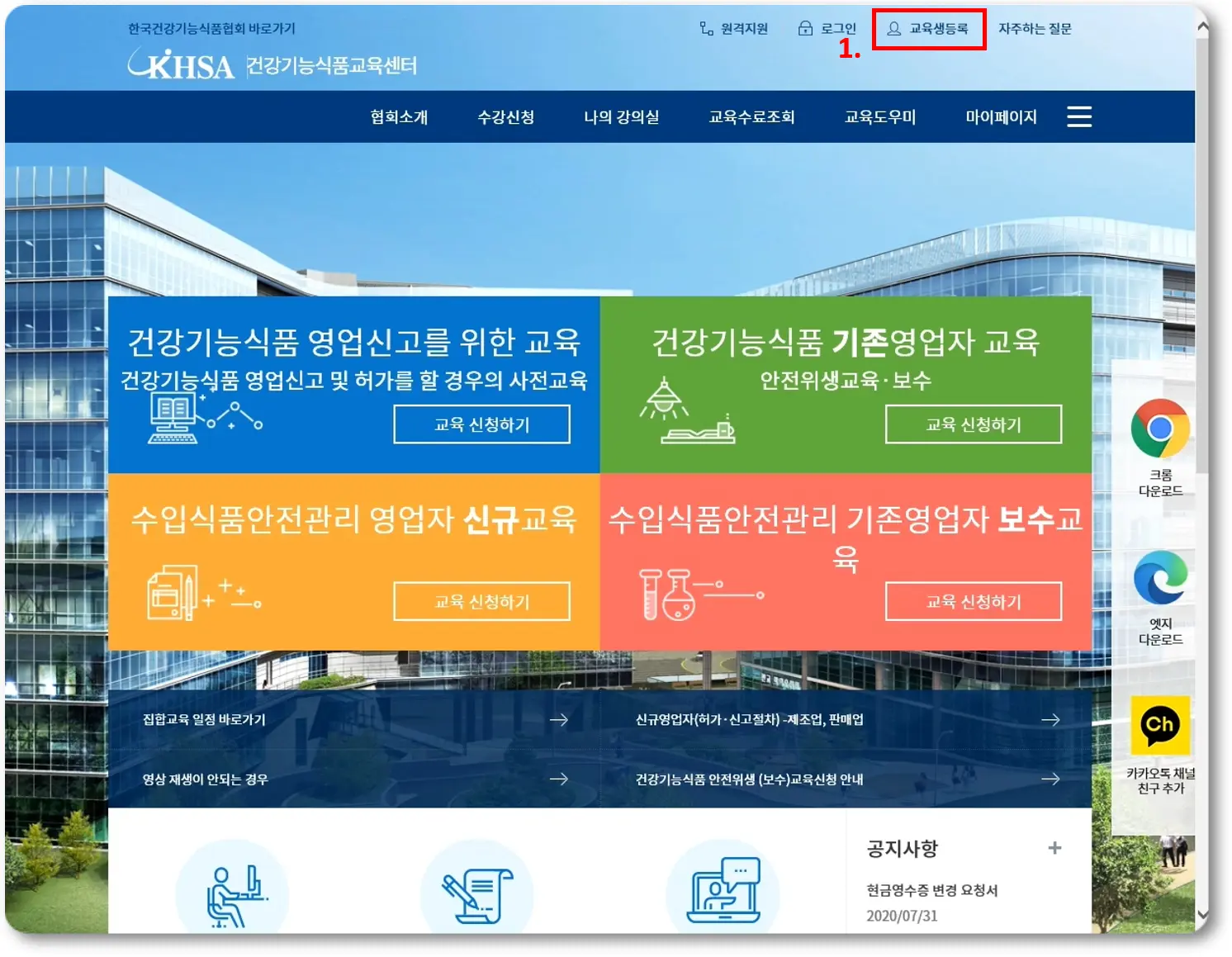 먼저, 건강기능식품교육센터로 이동하여 교육자 등록을 해줍니다.