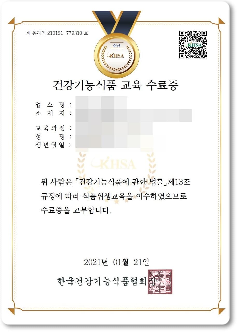 짜잔~ 이렇게 건강기능식품 교육 수료증을 발급받았어요!