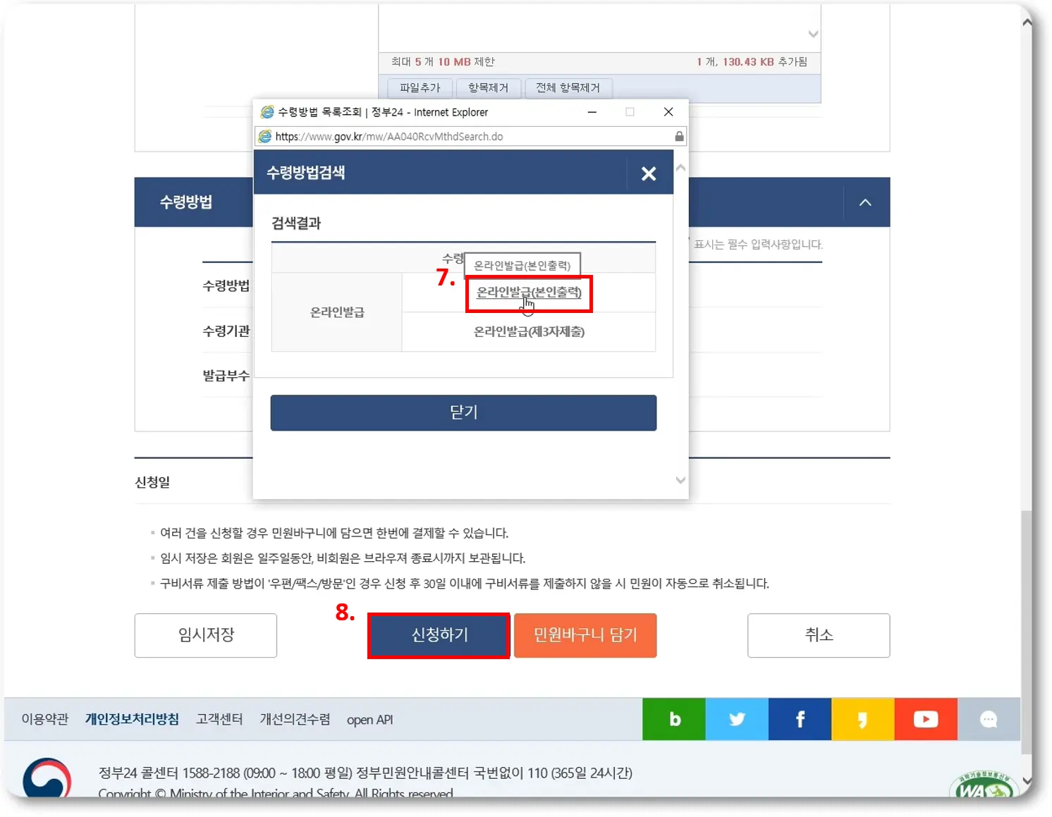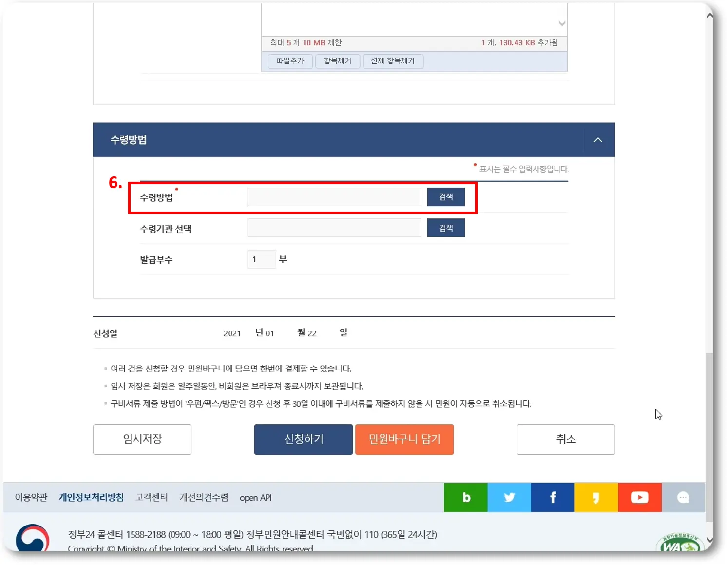 수령방법 아래에 보이는 수령 기관의 경우 본인 출력으로 한 저와 같은 경우에는 그냥 패스하셔도 됩니다~ :)