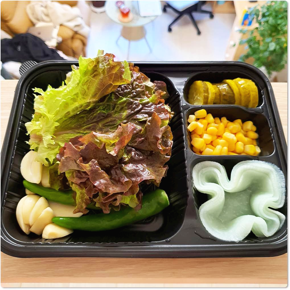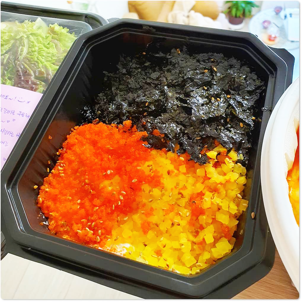 상추에 쌈무를 올리고 그 위에 마늘과 옥수수 그리고 날치알밥을 얹어서 먹으니 제법 괜찮더군요!